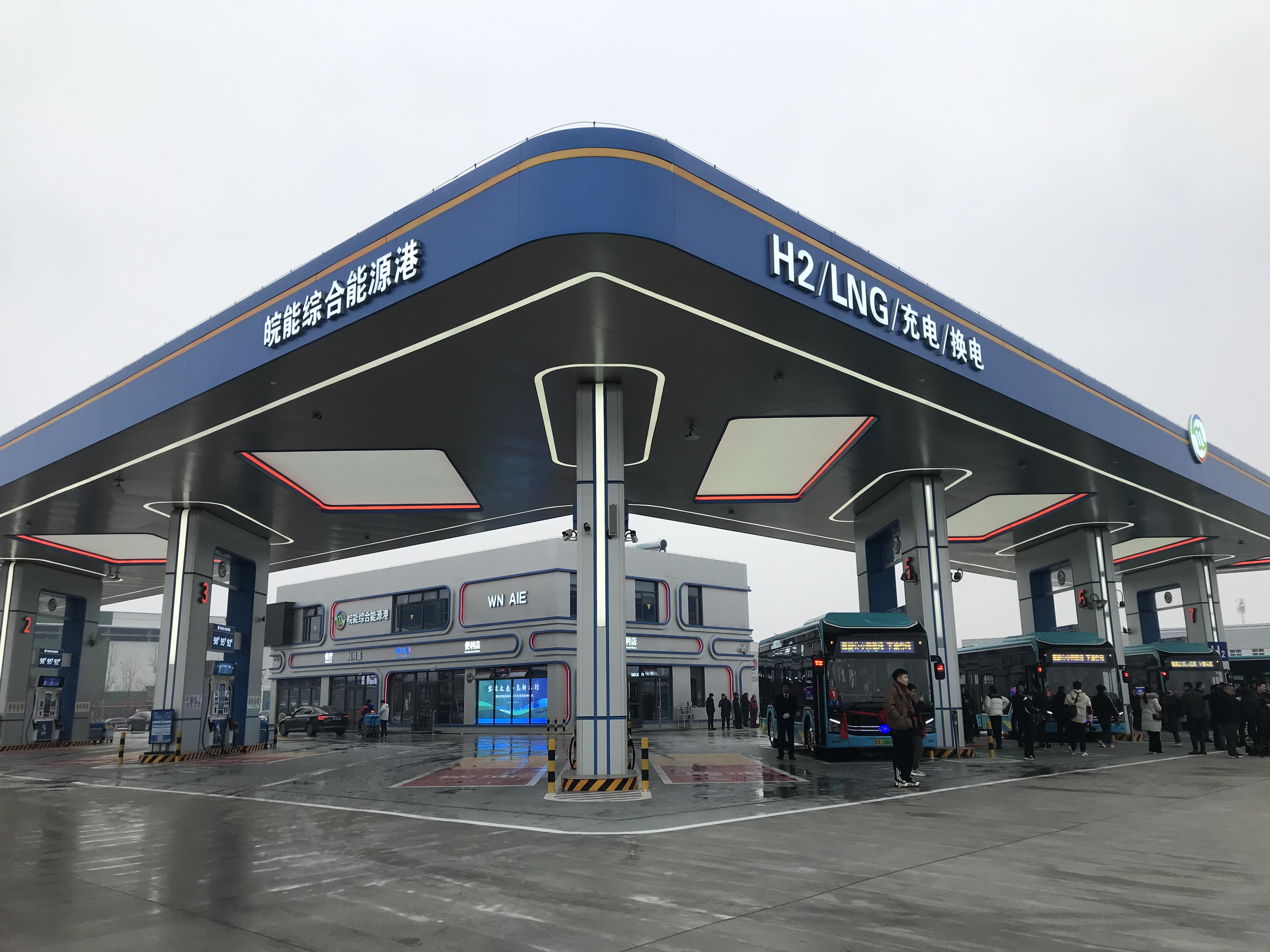 这批氢能公交车由皖天然气提供氢源。公司于2023年8月底建成全省首座“油气电氢服”一体化综合能源港——下塘梧桐大道站,其氢气总储量高达553kg,完全能够满足每天80台次氢能公交的氢气加注需求。此外,皖天然气已在合肥市建成长丰下塘、肥东龙塘两座具备加氢功能的综合能源站,为合肥市打造氢能公交示范线路提供了坚实的氢能供应保障。